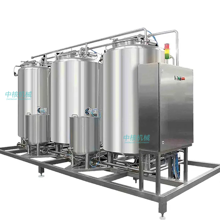 CIP清洗系統是指生產設備(罐體、管道、閥門等)及整個生產線在無需人工拆開或打開的前提下,在閉合的回路中進行循環清洗、消毒。適用用于乳品、飲料、酒類、農副產品加工等行業的設備和管道的清洗。